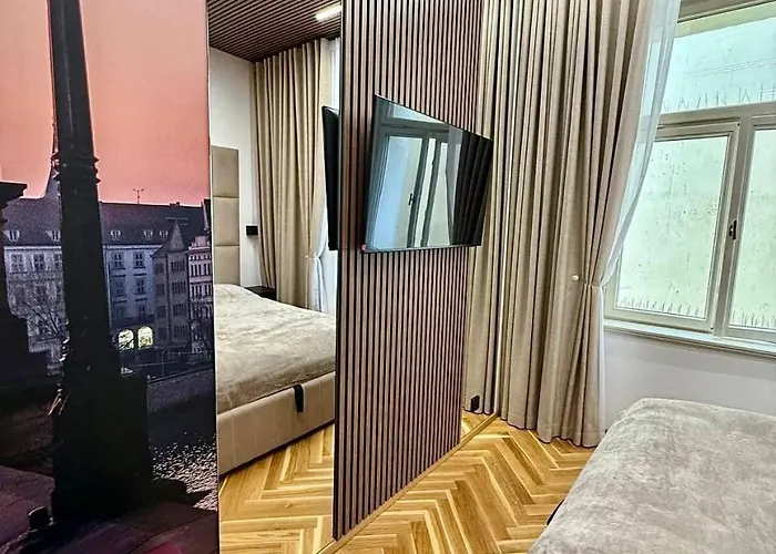 A Szexgépek Múzeuma csupán 1 km-re, a Týn-templom pedig 700 méterre van az apartmantól. Az ingatlan Prága Vencel tér körzetében található. A Lőportorony közvetlen szomszédságra helyezkedik el az 1 hálószobás apartmantól.